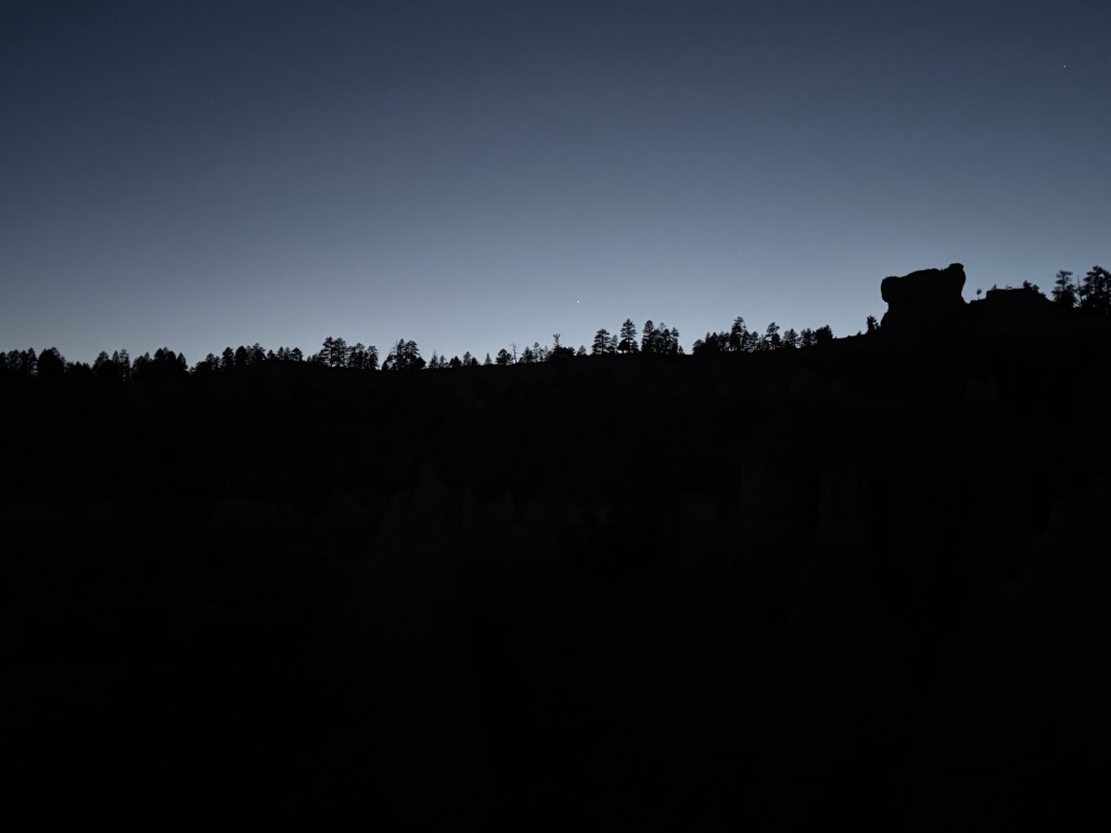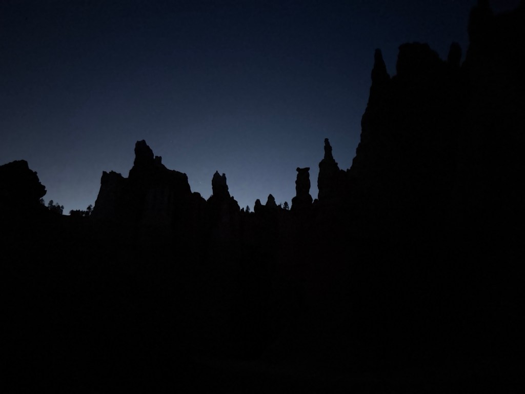 The hike back up was just weird. It was about 11:00 by now, and I could still see lights at various places around the rim, but absolutely no signs of activity below the rim. It was completely dark without my headlamp, and I had one of my trekking poles out for the extra balance in case I stripped in a rock or something like that. Very surreal and eerie, and once again the video won’t do it justice.