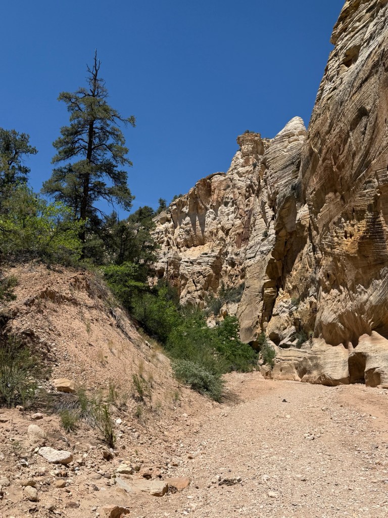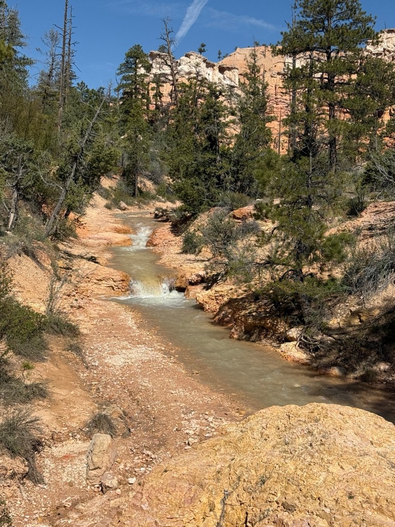 I started today a bit later, not finishing breakfast and posts until about 9:00. After breakfast I headed out to explore more of the local area. I started with a quick hike to Mossy Cave and Tropic Ditch Falls. The falls were neat, and some history to boot. In 1889 Mormon pioneers started digging this 10 mile ditch to irrigate their planned settlement – Tropic. It took 40 men 3 years to complete, but successfully supported their settlement, which remains as a farming community to this day. The Tropic Ditch causes far more rapid erosion and changes than the surrounding area, but still a neat little sight to see. Most cave was, well, a shallow cave. With moss. Didn’t even bother with a picture.