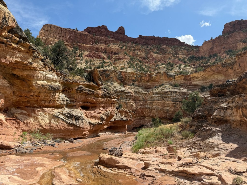 This is by far one of my favorite hikes ever. It was flat, cool, and also cool… If you are ever near Capitol Reef and Fruita I STRONGLY encourage you to do this hike from the bottom. Make it up as far as you can, but don’t bother with the dry wash if you are good with doing an up and back. This is so worth it!!!