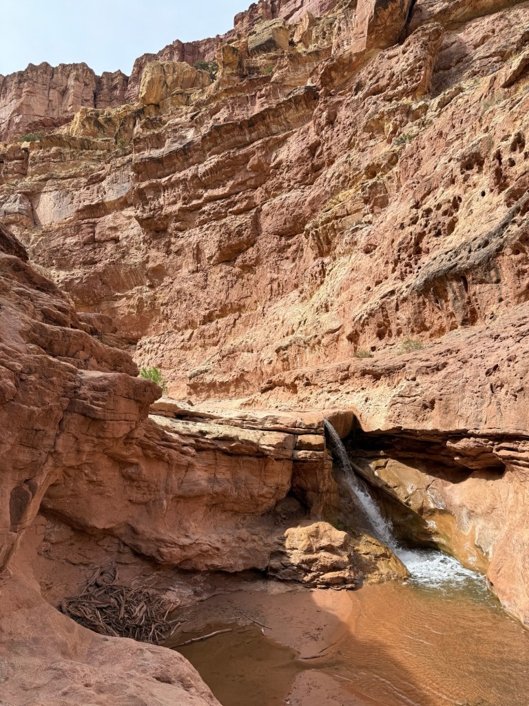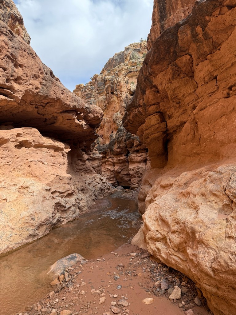 The trail starts from the top in a dry wash, but after 1.6 miles I was considering if I should have brought something to help find the water.