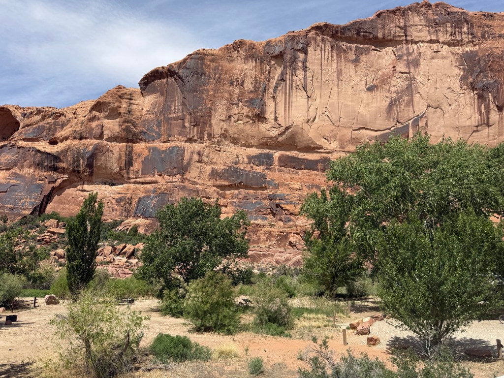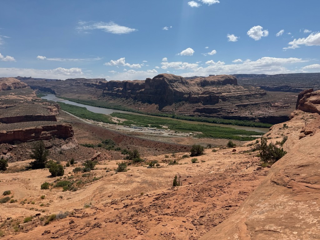I pulled into Moab around 11:30 and got super lucky with the campsite. This is one of the places I was hoping for things to work out with a first come first served camping sitch. I got the only available spot at my first choice right in the Colorado River – Goose Island Campground. The previous people must have just left since their tag was still in the site, but the host confirmed it was empty, so I definitely snagged that right away. I might be able to upgrade tomorrow to another sight right I. The actual water, but for now being 25 yards away will just have to do.