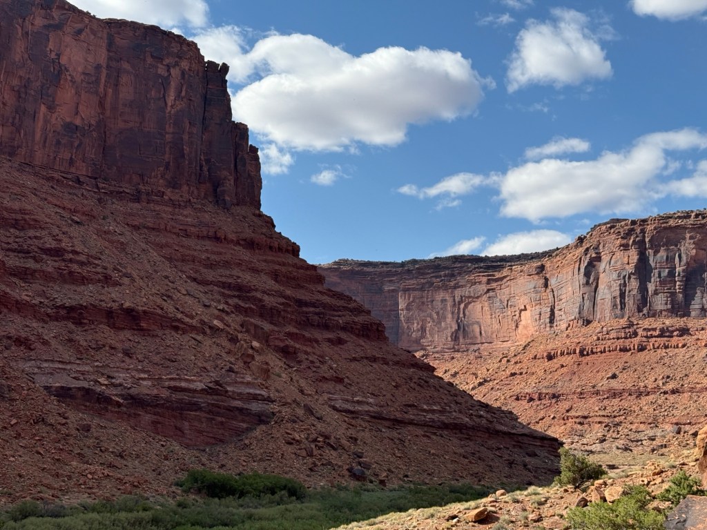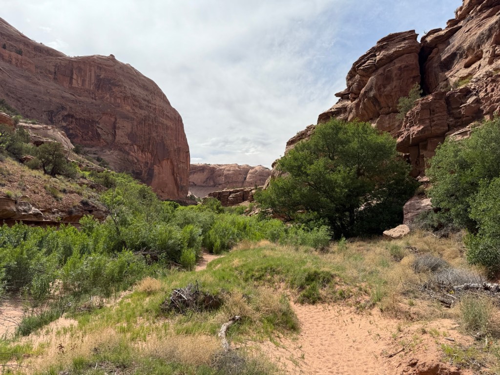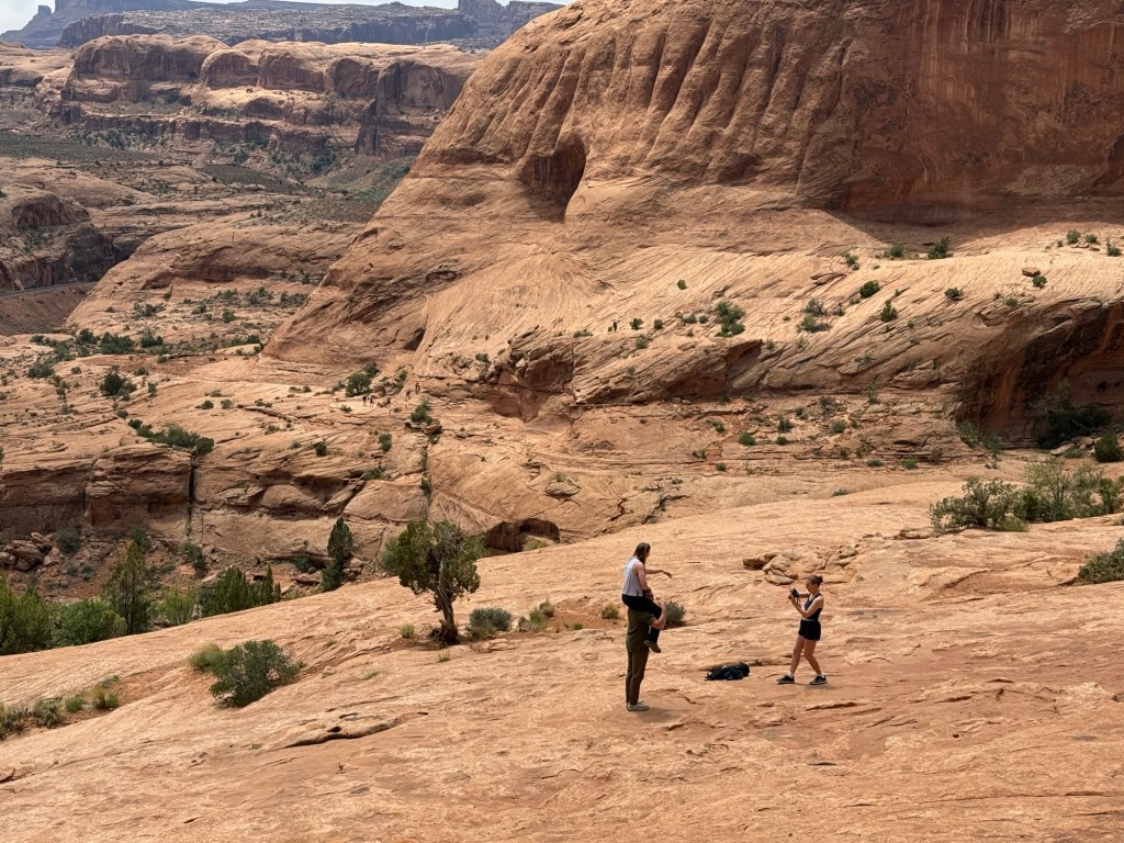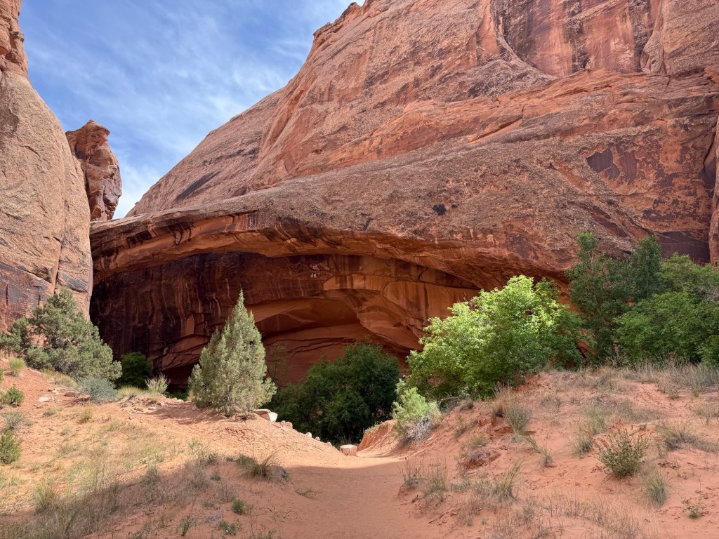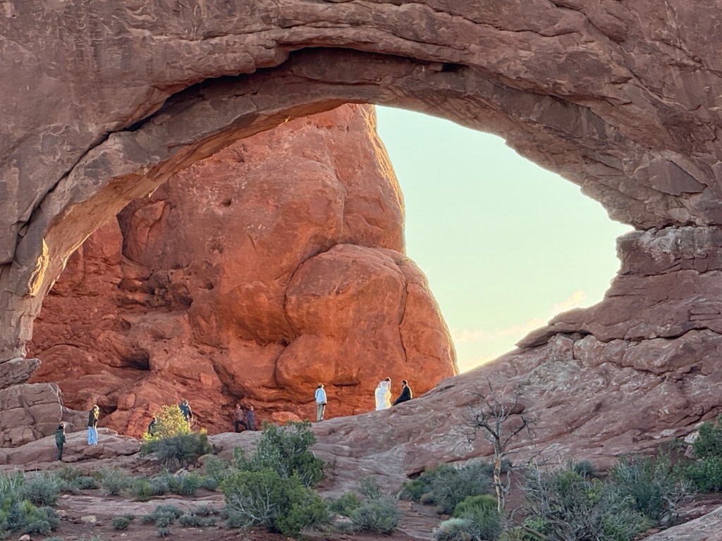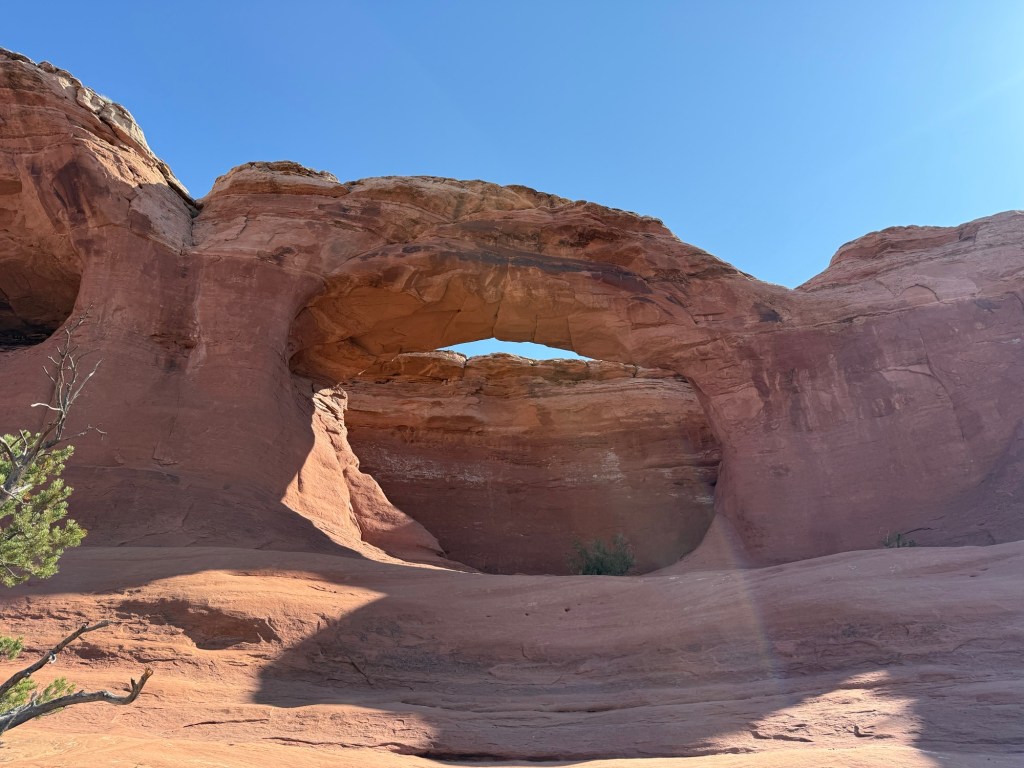 I did a quick round of grocery shopping, including some Starbucks and then headed out to drive along Colorado River. I ended up stopping to hike, Corona Arch and Pinto Arch, which makes a relatively short, but absolutely incredible. It seems that I had a bit of a theme today as while I was at windows this morning. I saw what appeared to be wedding photos being taken, and at Corona arch this afternoon I saw what was the most definitely engagement photos being taken. I couldn’t help but laugh a little bit as I was walking by them andthe young woman stared at her finger and said excitedly it’s just so sparkly and I couldn’t help but think about Leah’s reaction and what Tim’s plan as she got back into her car and saw the disco ball effect from her engagement ring across the car.