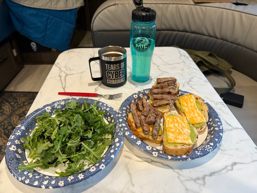 I am sitting in a side street (in the rain again!) writing and posting these before I head back to the campground to fold laundry and go to bed. Another early morning tomorrow so I can get in the park without any issues.