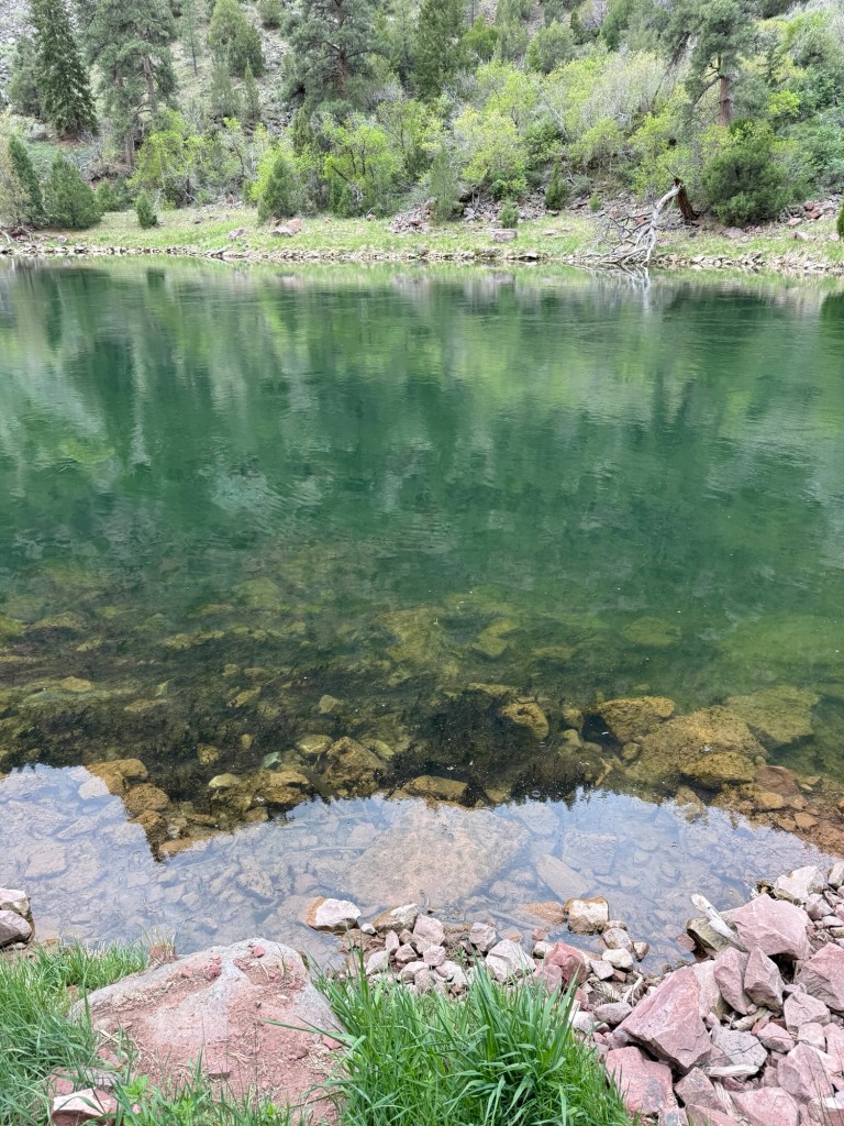 The scenery was amazing, even with the overcast skies, I am sure the pictures don’t do it justice. The water was so clear with just a little green tinge to it, and the cliffs were gorgeous, and obviously apt for a place called Flaming Gorge and Red Canyon.