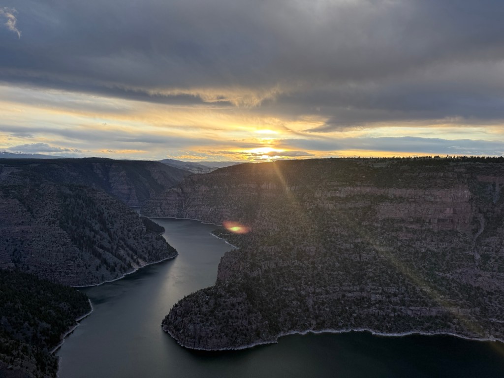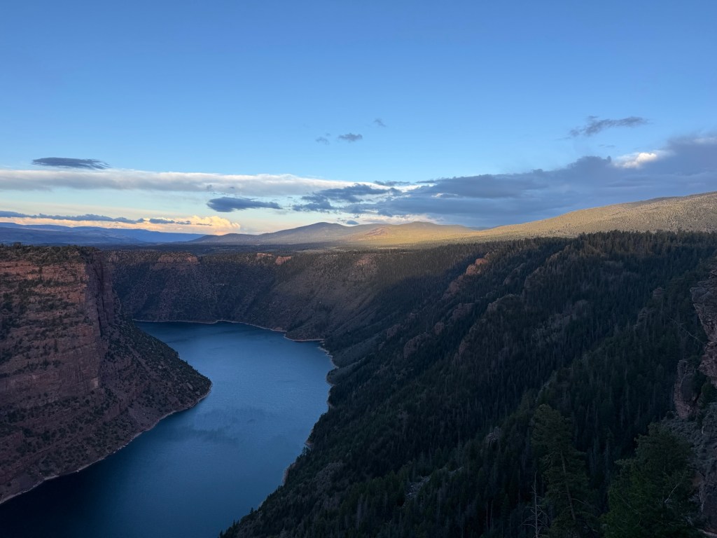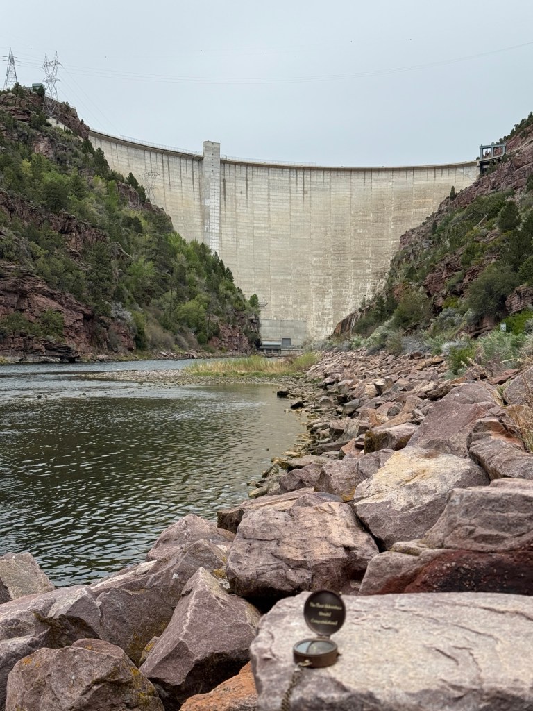 All in all I took a bit over 5 hours to hike 12.5 miles, about 2 hours of which was in the rain. It also never got out of the 40’s. That was absolutely beautiful hiking weather before the rain, and I had a good hat and rain jacket that kept me almost completely comfortable even with the weather. My pants got soaked, which wicked down my socks (the On boots once again were excellent) and by the time I got back to the RV I had a significant decrease in manual dexterity. No risk of frostbite or anything like that, I just had trouble using all of my fingers… they are all fine now. This is the final picture of the hike, of the Flaming Gorge dam, before I climbed the 300 vertical feet to get back to the RV. All in all, a great hike, but I would love to see that in the sunlight and maybe just a touch warmer temps.