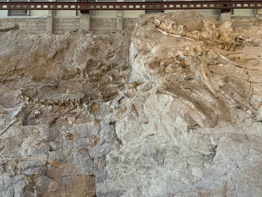 Today I drove down to Dinosaur National Monument to give my body a chance to recover from the hike yesterday. The route I drove was… rural. Without Apple Maps or some app I for sure would have thought I was lost. I did get to see some mule deer and plenty of livestock, including baby goats (sorry Leah, no pictures). I did make it there without issue, and took a quick spin through the Visitor Center, buying my park pin and a paracord survival bracelet (because I always wanted one🤷♂️) before heading up to the Quarry Exhibit Hall, which is incredibly cool! There is a wall with hundreds of huge fossils partially exposed. And this is the first place I can think of where they tell you to not touch the replica, but encourage you to touch the actual fossils!! So cool!