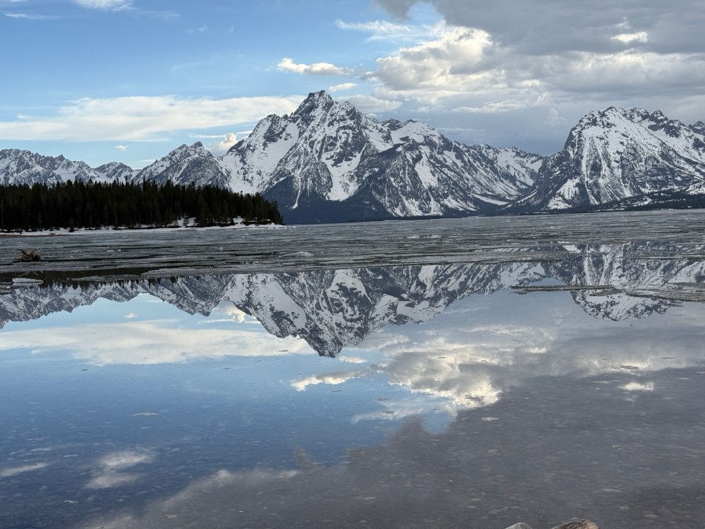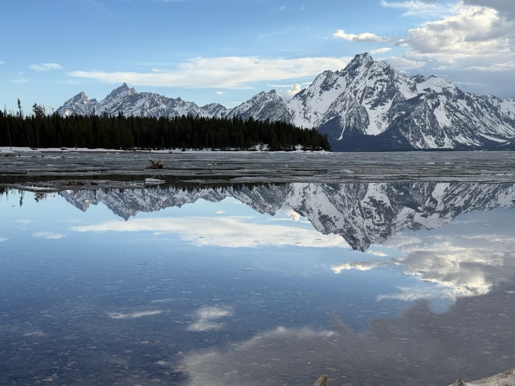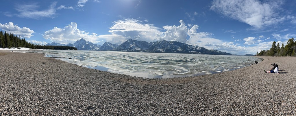 I truly hope I never become jaded to the amazing things we have access to and the ability to visit for a relatively small investment. Yellowstone was absolutely gorgeous, and I didn’t even get to see the full wild flower blooms, major parts of the park or all of the cool animals. Driving into Grand Teton was just plain humbling. Truly majestic to see the mountains along the Snake River. Fortunately I managed to keep the rubber side down, and pulled into my camping spot with electrical and water hookups – a luxury for sure! I took a quick 2 minute walk down to the shore of Lake Jackson and was once again floored by the whole experience. I could hear the ice bouncing off each other, only slightly spoiled by the other people who had the actual nerve to speak to each other and ruining the majesty (no, I’m not serious, well, not completely).