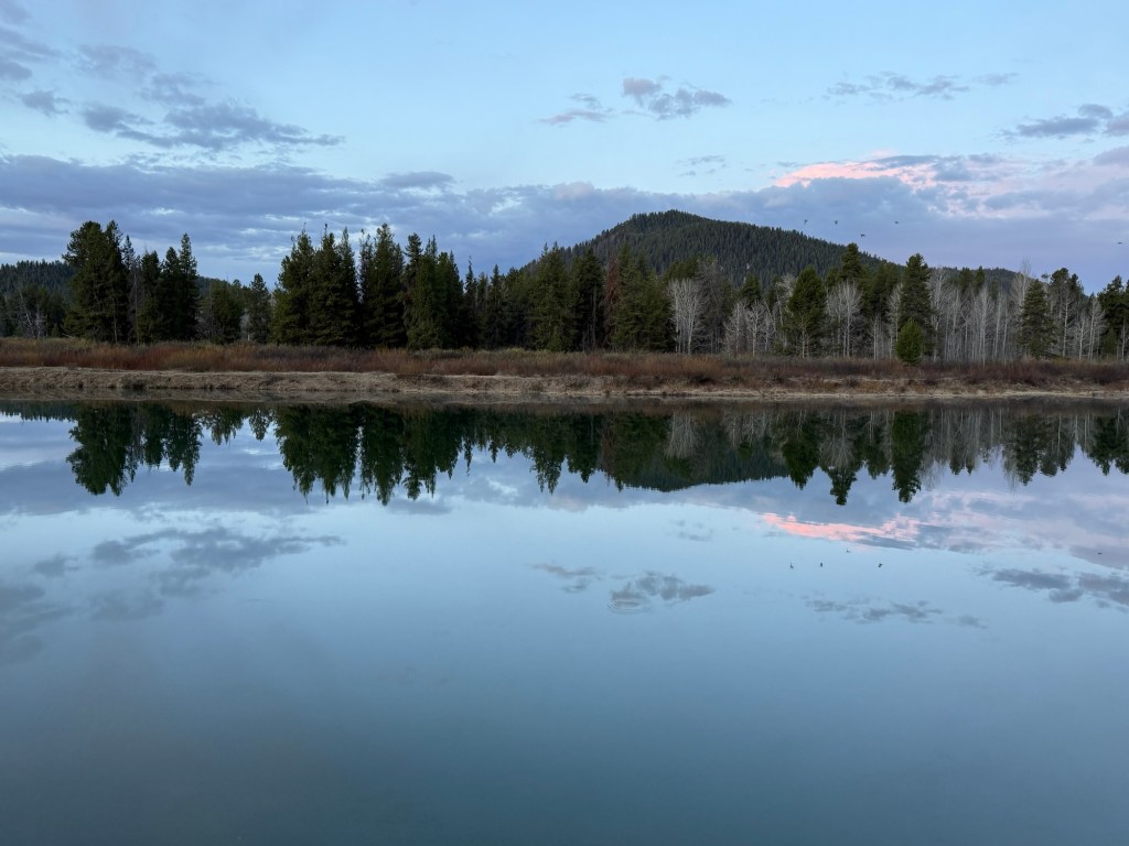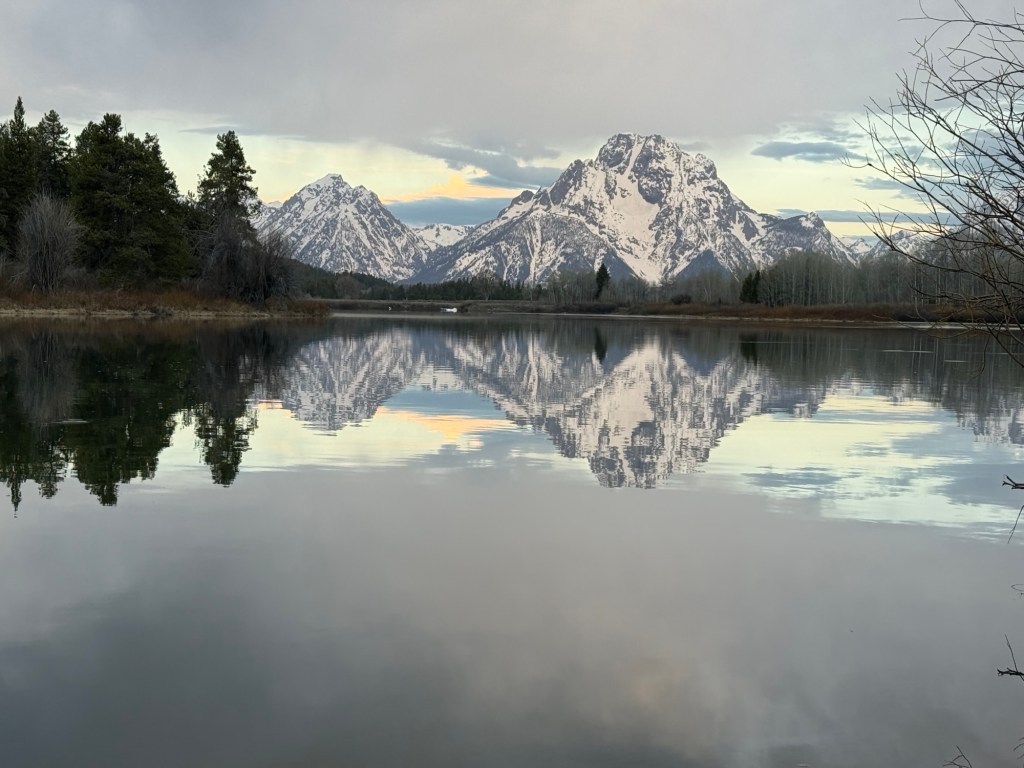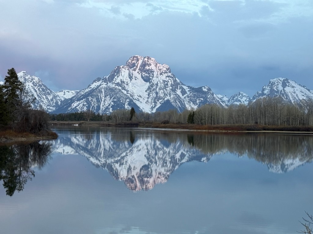 As planned, I was awake in time to be the first person at Oxbow Bend, one of the highly recommended photo spots. There were some clouds to the east which was a nuisance, but still pretty impressive. I also stopped at Willow Meadow which had some better light but lacked the reflection.