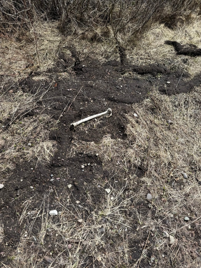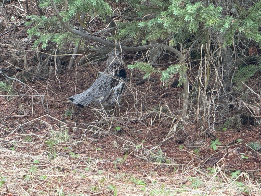 Then it was time to figure out what to do for the day. I decided to try for another long hike since tomorrow will have a fair bit of driving. My target was 9 miles around Emma Madeline Lake, but once again the remnant snow banks had other plans. After about 1.5 miles of fighting through deeper and deeper snow banks and becoming increasingly fatigued, I decided to turn back and try another route. I did see a bald eagle take off from a nearby tree, stumbled across a rather large bone and saw a couple of ruffed grouse during that leg of the trip. I didn’t know what the grouse was at the time, but it became clear later on.